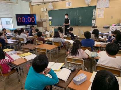 5月10日(月)4時間目、3年2組は国語で「すいせんのラッパ」を学習していました。
