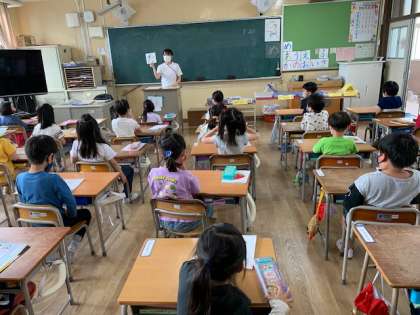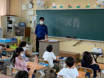 5月11日(火)3時間目、1年生は1組も2組もひらがなの「た」を学習していました。1組は「た」のつく言葉をあつめていました。2組は2つの「た」の違いを見つけ、どちらがよいか考えていました。