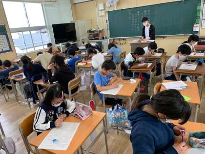 5月12日(水)4時間目、6年1組も2組も国語のテストをしていました。