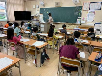 5月12日(水)4時間目、2年1組は算数で「これまでのひっさんとちがうところを見つけよう」というめあてで学習していました。