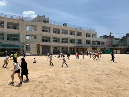 5月14日(金)3時間目と4時間目の間の休み時間に運動場へ出て遊ぶ子どもたちがいました。初夏を思わす青空のもと、気持ちよく遊んでいました。