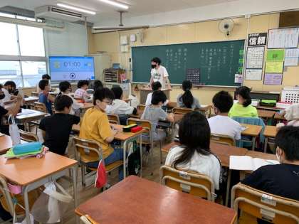 5月17日(月)今日から登校時刻が9:55〜10:15に変わりました。多くの子が時間を間違えずに登校できていました。登校して30分間は、朝の会で、前日の5・6時間目と、その日の1・2時間目に家庭で学習したプリント等の振り返りを行います。