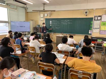 5月17日(月)3時間目、6年2組は理科で「ヒトや動物の体」の学習で「だ液のはたらきを調べよう」という課題をどのように実験し、解決していったらよいかを考えていました。