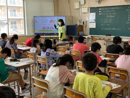 5月17日(月)4時間目、5年1組は算数で階段のような形の箱の体積を求めていました。