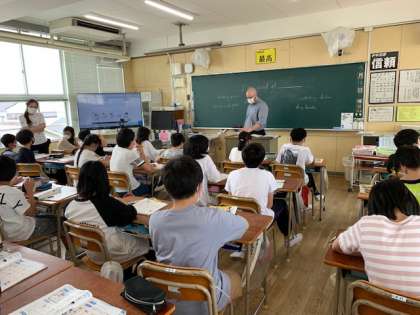 5月18日(火)3時間目、6年1組は外国語科で「I'm good at 〇〇.」を学習していました。後ろに座っている子に何の学習をしているかを聞くと、「自分は〇〇が得意だと英語で言う勉強をしています。」と返ってきました。真剣に取り組んでいるなあと思いました。