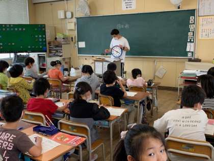5月25日(火)1時間目、3年2組は算数で、時刻と時間の問題を解いていました。