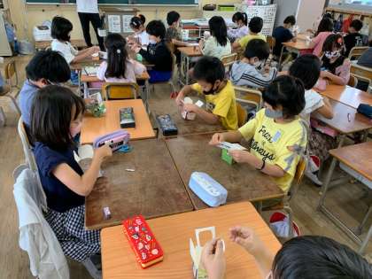 5月28日(金)1時間目、3年2組は総合でかいこの「家」を作っていました。牛乳パックを利用して観察できるように透明なプラスチックを取り付けます。かいこの観察が早くできるようになるといいですね。