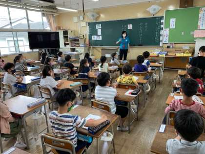 5月28日(金)1時間目、1年1組はひらがなの「る」を学習していました。「る」のつく言葉を集めていますが、なかなか思い浮かばない様子です。