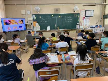 5月31日(月)3時間目、2年1組は算数で30cmものさしを使って長さを測る学習をしていました。