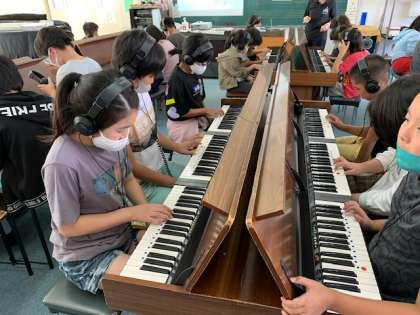 6月1日(火)5時間目、5年1組は音楽でオルガンを弾く練習をしていました。