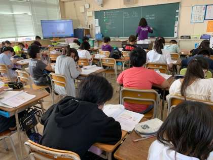 6月2日(水)1時間目、5年1組は算数で小数のかけ算のしかたを考えていました。