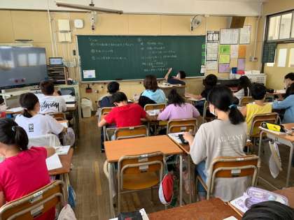 6月3日(木)3時間目、6年2組は子算数で、「円の面積を求める公式を考えよう」というめあてで考えていました。