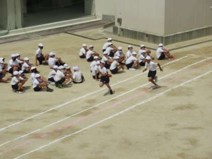 どの子も、しっかりと腕をふって、ゴールを見て走っていました。暑い中、よくがんばっていました。5年生の時よりもタイムはどうだったでしょうか。