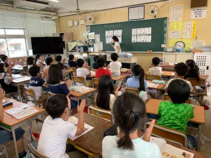 6月11日(金)2時間目、3年1組は音楽でいろいろなリズム打ちをしていました。