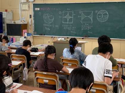 6月11日(金)2時間目、6年1組は算数で、円に関する複雑な練習問題を解いていました。子どもたちは集中して問題に取り組んでいました。