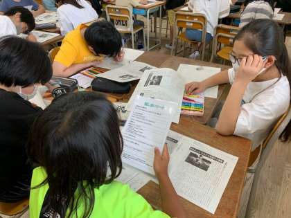 6月11日(金)2時間目、5年1組は「新聞記事を読み比べよう」で読み比べて分かったことの話し合いをしようとしていました。「話し合いシート」を使って、話し合いができるように取り組んでいました。