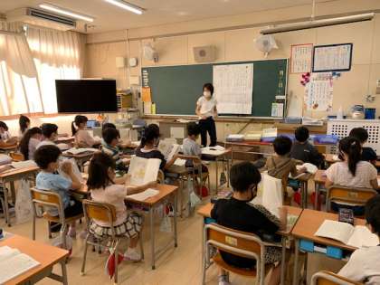 6月17日(木)1時間目、2年1組は国語で「名前を見てちょうだい」を学習していました。今日は大男にぼうしを食べられた場面の読み取りをしていました。