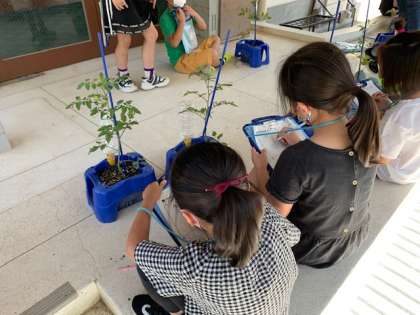 6月17日(木)1時間目、2年2組は生活科でミニトマトの成長について記録していました。