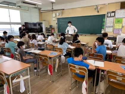 6月18日(金)1時間目、6年2組は算数で分数のかけ算のいろいろな計算の仕方を考えていました。