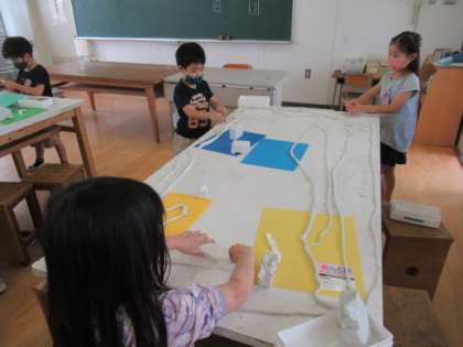 活動を進めていくと、友だちと協力しながら長い道を作るグループが出てきました。みんな、楽しく活動していました。