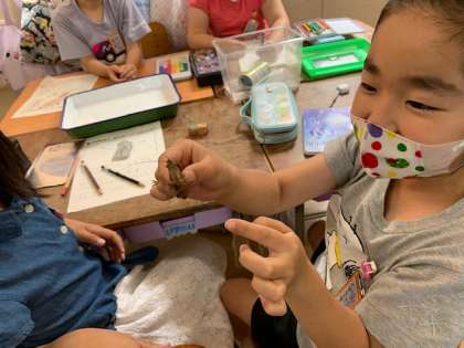 6月21日(月)2時間目、2年2組は生活科でザリガニの観察をしていました。ザリガニをさわれる子と苦手な子で観察のしかたが違っていました。