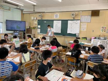 6月22日(火)2時間目、3年2組は算数で「すきなスポーツ調べ」をグラフに表していました。