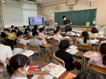 6月22日(火)2時間目、4年2組は国語で「広告を読み比べよう」を学習していました。