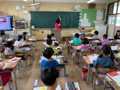 6月24日(木)1時間目、1年1組は国語で「のばす おん」について学習していました。「おばさん」と「おばあさん」のちがいの後、「おじさん」について考えていました。