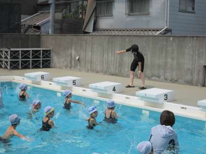 6月24日(木)2時間目、2年生のプール開きがありました。2年生は粉浜小学校のプールは初めてです。水は冷たかったかな?気持ちよかったかな?