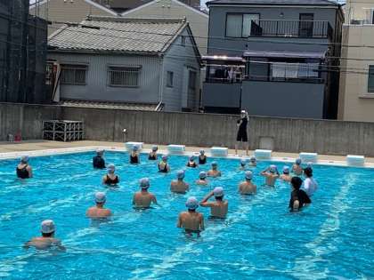 6月24日(木)4時間目、6年2組がプール開きを行いました。水慣れをしていました。