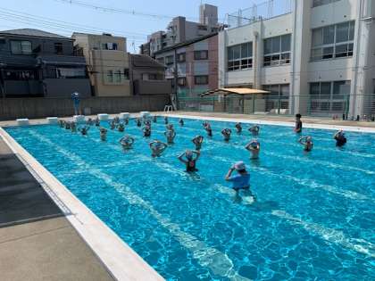 6月24日(木)5時間目、4年2組はプール開きをしました。2年ぶりで、今日は水慣れをしたり、すわる位置を決めたりしました。