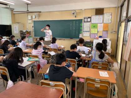 6月28日(月)1時間目、6年2組は「防災ポスターをつくろうこ」と黒板にありました。めあては「歴史新聞を作ろう」でした。新聞やポスターで何かを人に知らせることを学習しているようです。