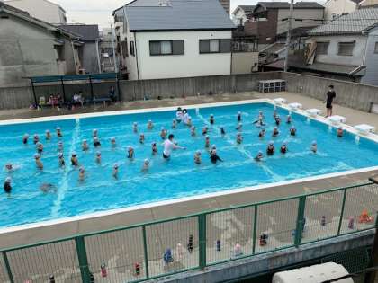 7月6日(火)2時間目、1年生は体育で水遊びをしていました。楽しそうにプールに入っていました。
