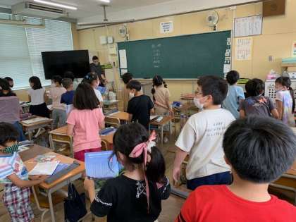 7月6日(火)5時間目、3年2組は音楽で「茶つみ」を歌っていました。