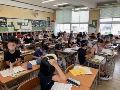 7月9日(金)2時間目、3年1組は音楽でリコーダーの練習をしていました。今日は「おやすみ」という曲を練習するようで、階名を書き込んでいました。
