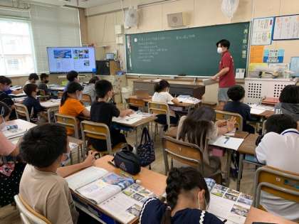 7月9日(金)2時間目、5年2組は社会科で漁港のまわりの様子を調べていました。先生からは「大量の氷を作っているけれど、何に使っているの?」という質問がありました。