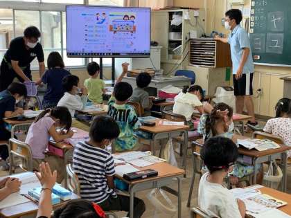 7月14日(水)1時間目、1年2組は算数で「かずのちがい」を求めるひき算を学習していました。