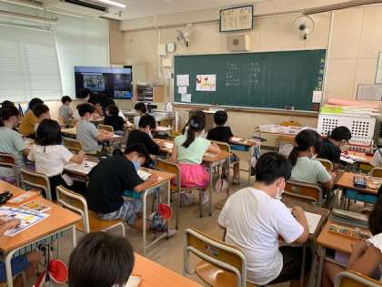 7月15日(木)1時間目、4年2組は図工で「夢の自転車」の絵を描いていました。お菓子でできた自転車を描いている子がいました。楽しい気持ちになりました。