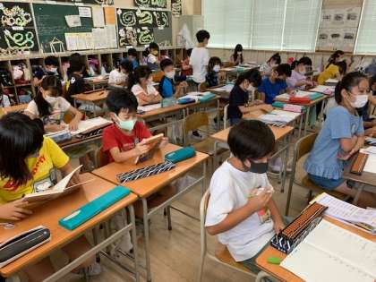 7月15日(木)1時間目、4年1組は算数でそろばんの学習をしていました。