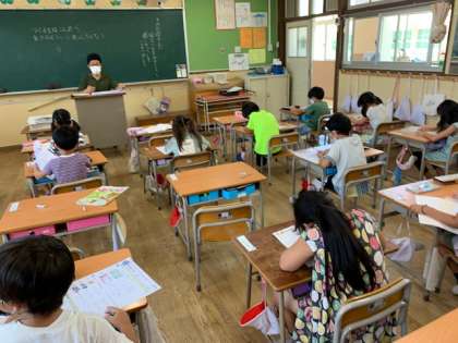 7月19日(月)2時間目、1年2組は国語で「おおきな かぶ」のプリントをしていました。