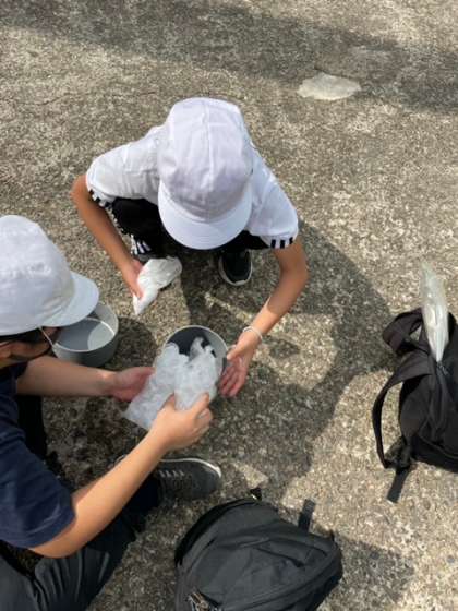 シャーベット作りが始まりました。班で協力してどれだけ転がすかが、おいしくできるかに関係がありそうです。