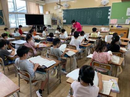 8月26日(木)2時間目、1年1組は夏休みの宿題をみんなで確かめていました。