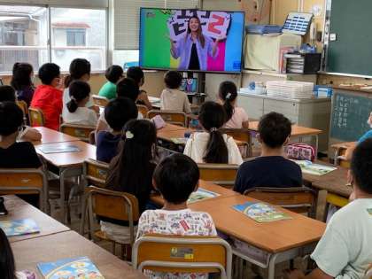 8月26日(木)5時間目、3年1組は外国語活動で「I like blue.」を学習していました。様々な色とその発音を動画を通して学習していました。