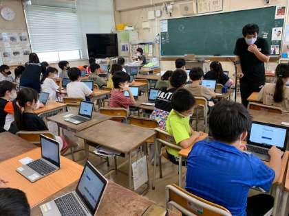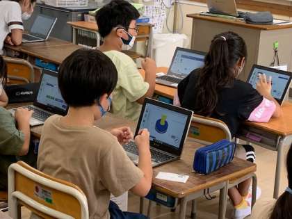 8月26日(木)5時間目、4年1組は理科でデジタルドリルの使い方を学習していました。パソコンが出してくる問題を解いていきます。一人一人問題が違います。ですから自分のペースで学習することができます。合格するとスタンプをもらえたりトロフィーをもらえたりしていました。