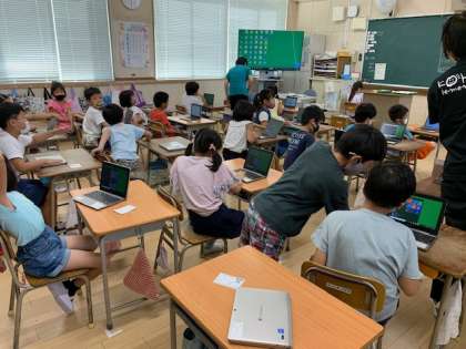 8月30日(月)1時間目、2年2組はデジタルドリルの使い方を学習しました。一人一人に合わせて問題が出題されるので、個別最適な学びができることを期待しています。