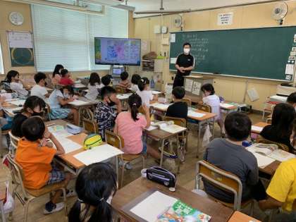 8月30日(月)1時間目、3年2組は社会科で「みんなが食べたり使ったりしているものはどこで、だれが作り、売っているのだろうか」というめあてで学習していました。