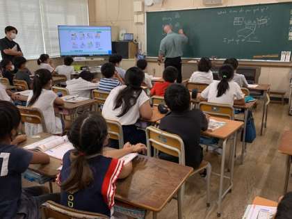 8月31日(火)2時間目、5年2組は外国語科で「どのくらい手伝いをしているか伝えよう」を学習していました。「akways」「usually」「sometimes」「never」という言葉を学習していました。