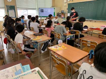 9月1日(水)1時間目、6年2組は外国語科で「夏休みにしたことを伝え合おう」を学習していました。「went」「enjyoyed」のように過去形が黒板に書かれていたので、過去形について簡単に子どもたちにふれたのだろうと思いました。