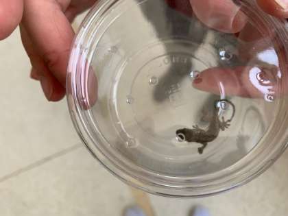 9月1日(水)5時間目、3年1組に珍客がやってきました。掃除の時間に窓を開けていたからだと思うと言うことです。小さなヤモリです。ヤモリのエサはなにかを調べようということになったそうです。
