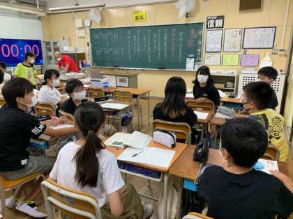 9月3日(金)1時間目、6年1組は国語で話し合いの計画を立てていました。班で役割分担をしていました。